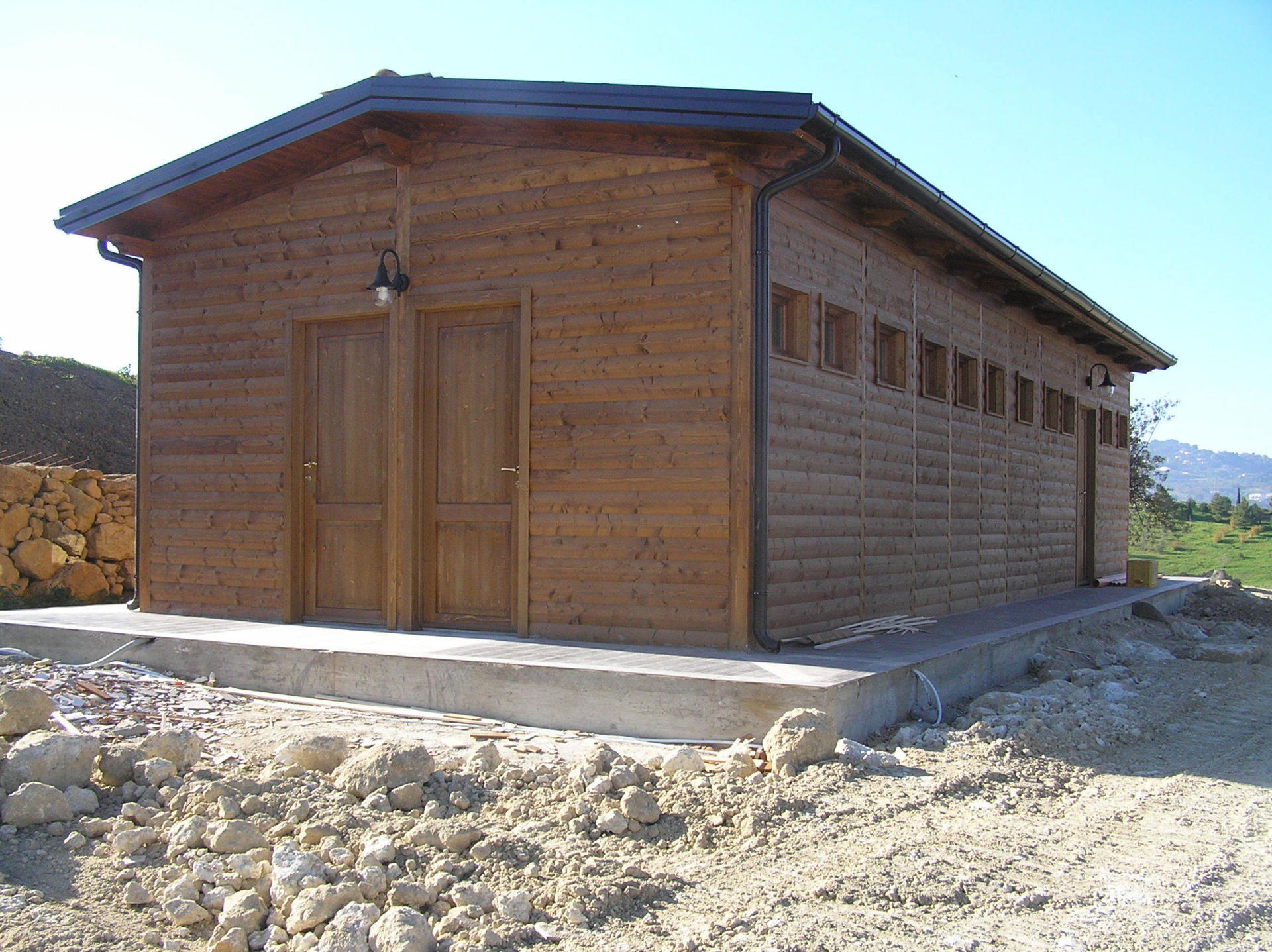 Nel cuore del Comune di Avola prende vita una struttura prestigiosa, pensata per accogliere l’Agricampeggio in un abbraccio di natura e autenticità. Realizzata in legno lamellare di abete, con perlinato dall’elegante effetto “mezzo-tondo”, questa architettura racconta il calore dei materiali naturi e la cura artigianale dei dettagli. Ogni superficie è stata protetta con un delicato impregnante bianco anti-tarlo e fungicida, esaltando la purezza del legno e garantendo bellezza e durata nel tempo. Un progetto che unisce tradizione, armonia e rispetto per l’ambiente.