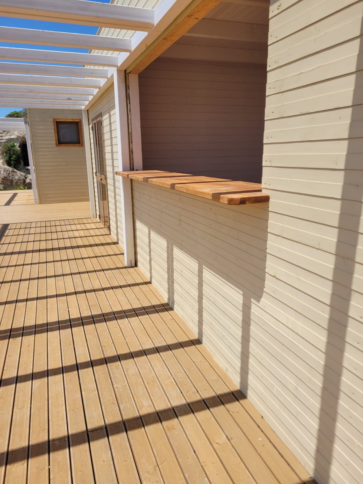 Realizziamo bungalow in legno interamente su progetto, modellati sulle esigenze e sui desideri di ogni cliente. Strutture avvolte dal calore del legno, arricchite da pergole con teli automatici e ampie finestre che lasciano entrare la luce naturale, trasformando ogni ambiente in un luogo luminoso e accogliente. I colori e le texture del legno si fondono con il paesaggio circostante, creando un’armonia perfetta tra abitazione e natura. Ogni bungalow diventa così uno spazio unico, dove comfort ed estetica incontrano la bellezza dell’ambiente esterno.