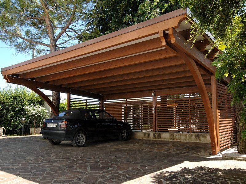 I carport sono disponibili con pareti laterali e griglie di legno, per integrarsi al meglio negli spazi della vostra casa o azienda.