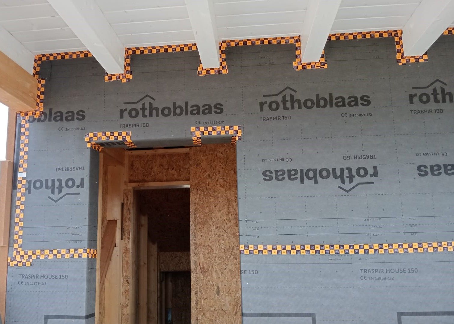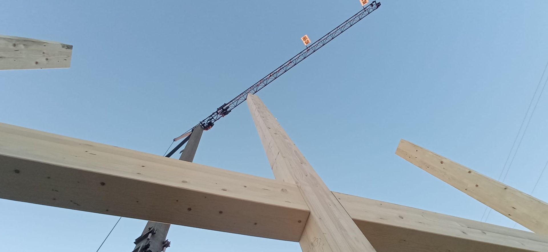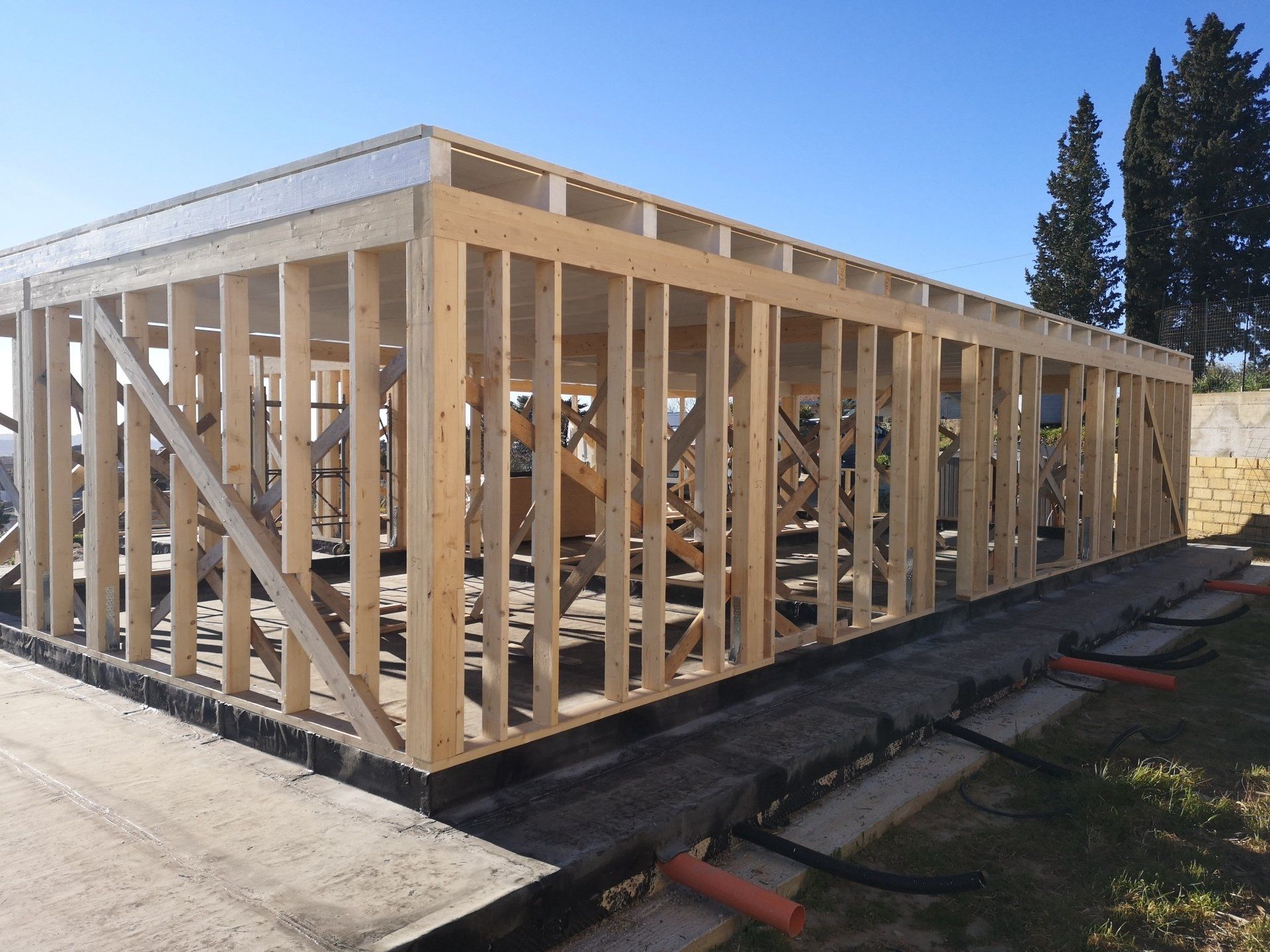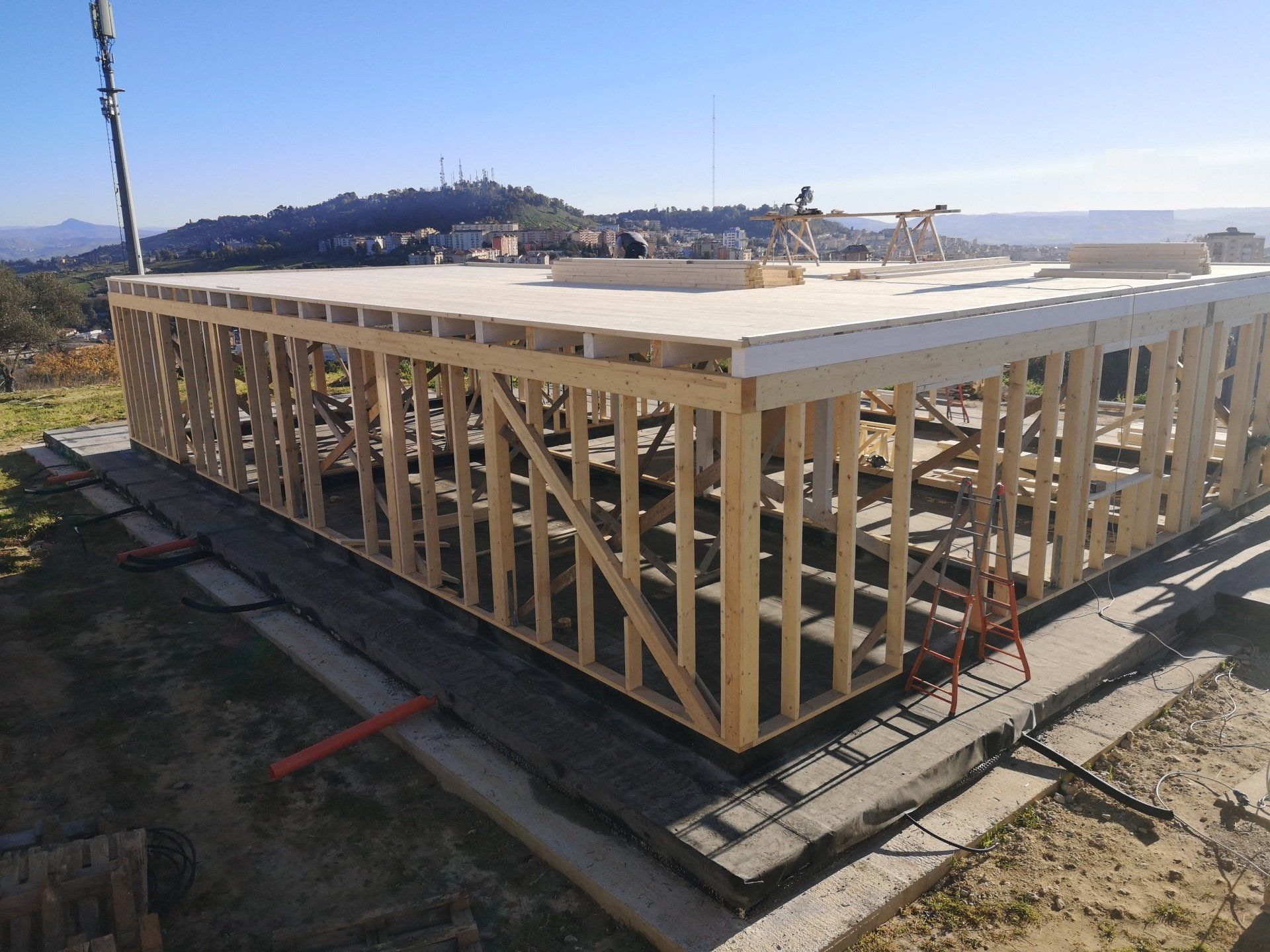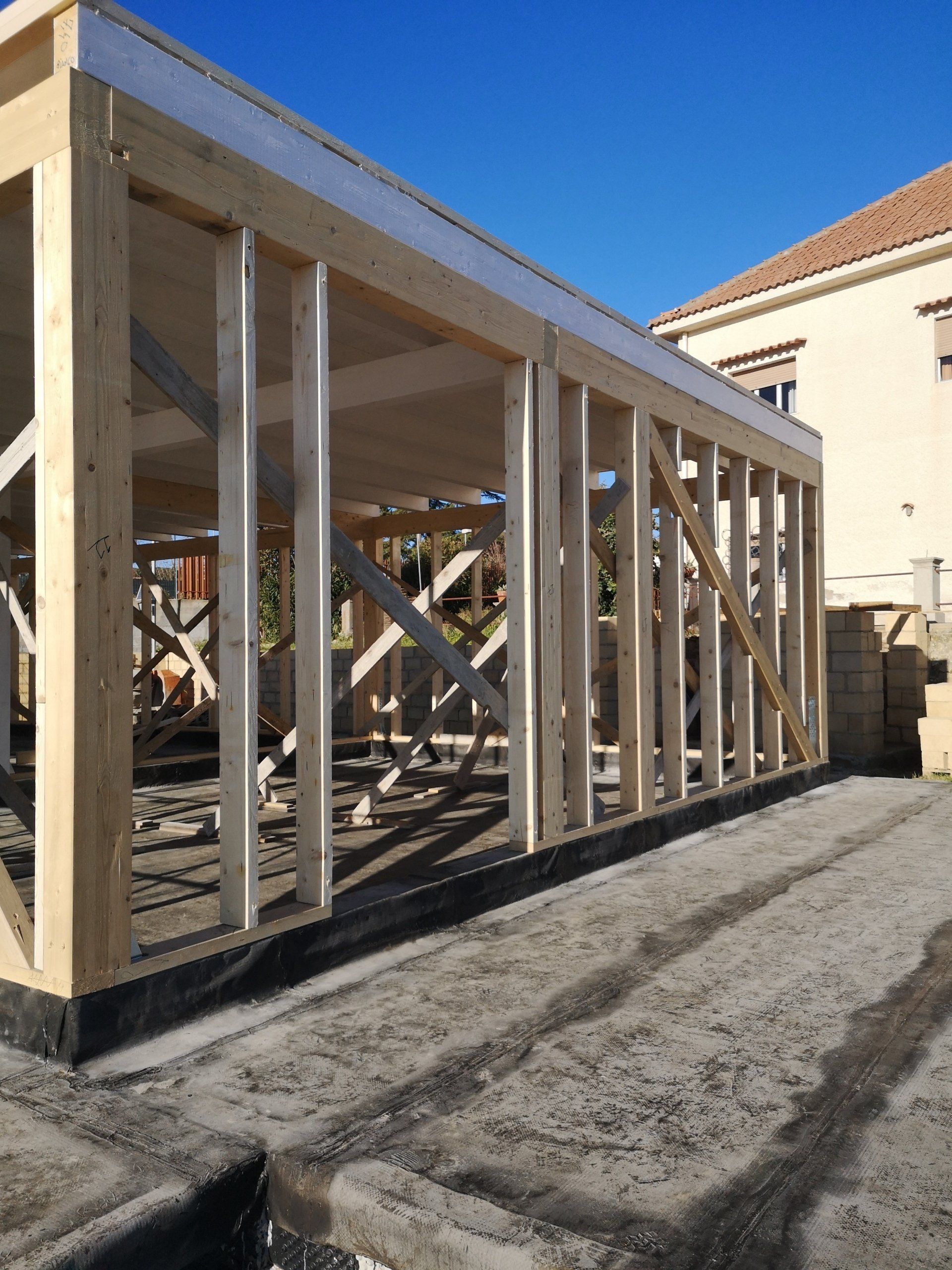 Inizio di una nuova villa unifamiliare in Bioedilizia con struttura a Telaio - Platform Frame su due livelli. In questo sistema la struttura portante è composta dal telaio (insieme di travi e montanti), a sua volta rivestito da pannelli che hanno funzione di controventamento e vanno così a consolidare la struttura portante principale
